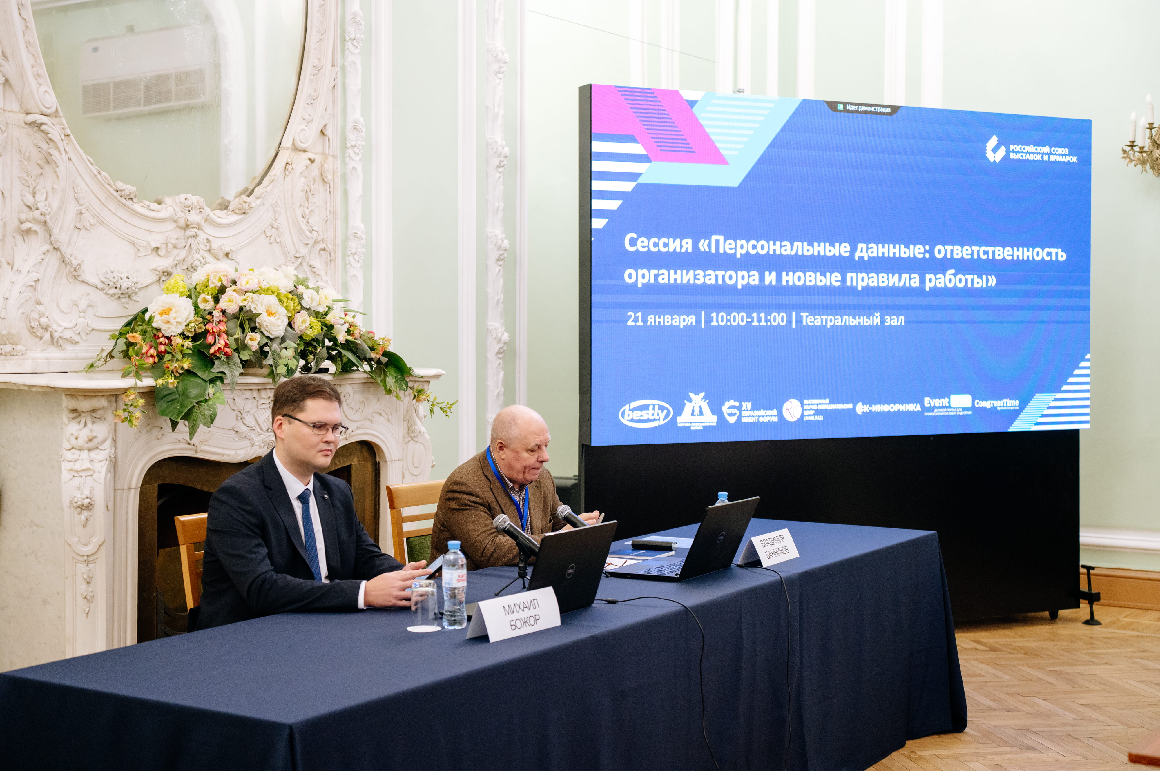 Деловая программа стартовала с сессии «Персональные данные: ответственность организатора и новые правила работы», на которой Михаил Божор, генеральный директор ООО «Афонин, Божор и партнёры», руководитель практики цифрового права, и Владимир Банников, председатель Комитета по правовым вопросам, совершенствованию нормативно-правовой базы, генеральный директор ООО «ВК «Мир-Экспо», подробнее рассказали обо всех требованиях обработки персональных данных, поделились судебными практиками, а также ответили на волнующие отрасль вопросы.